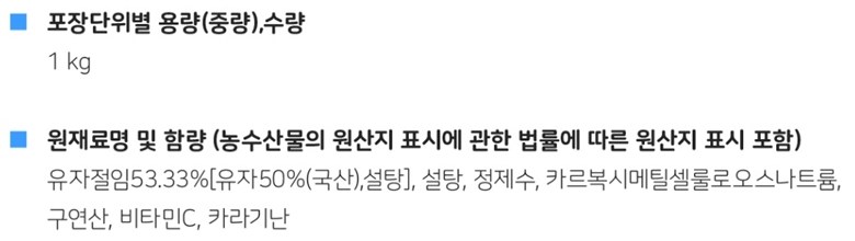 | 포장단위별 내용물의 용량(중량), 수량 | 1KG*1 | 원재료명 및 함량 | 컨텐츠 참조 |
