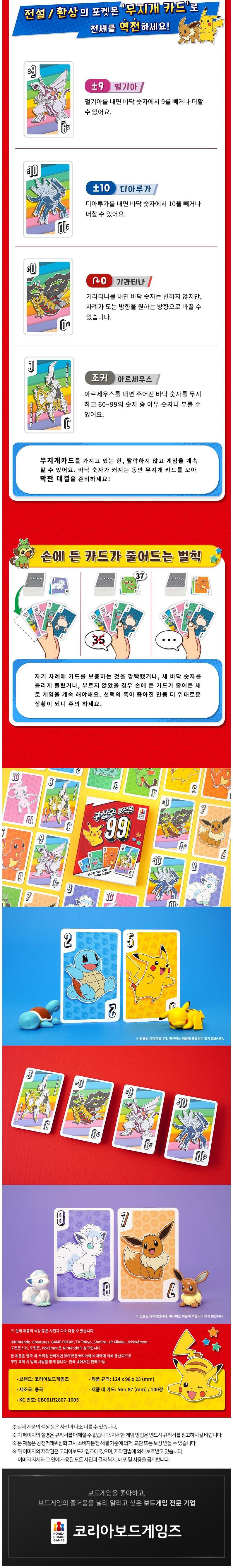 | 품명 및 모델명 | 코리아보드게임즈 구십구 포켓몬 KBG-CH04CZ8 | KC 인증정보 | CB061R2807-1005 |