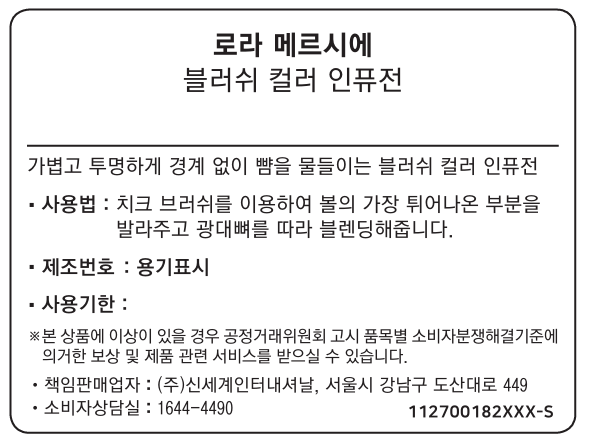 | 화장품제조업자, 화장품책임판매업자 및 맞춤형화장품판매업자 | 오르베온 글로벌 유에스 엘엘씨/ (주)신세계인터내셔날 | 제조국 | 이탈리아 |