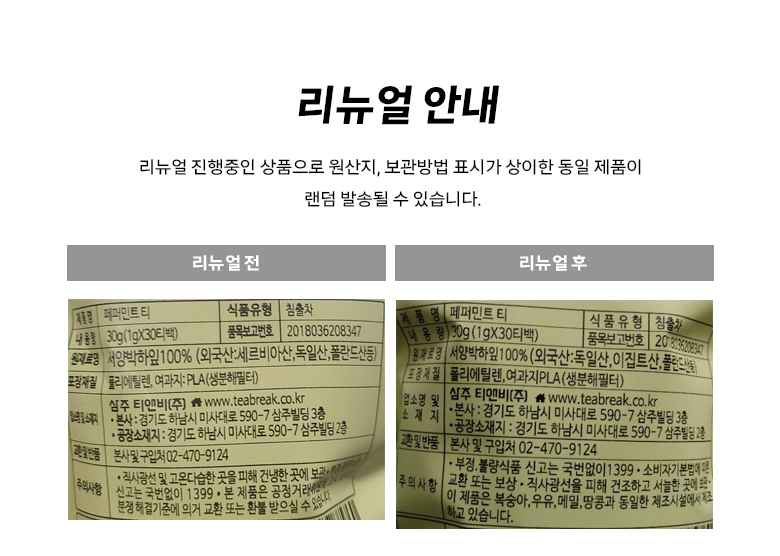 ※리뉴얼 진행중인 상품으로 유통기한-소비기한 표기, 티백 재질, 원산지가 상이한 동일 제품 수령하실 수 있습니다.