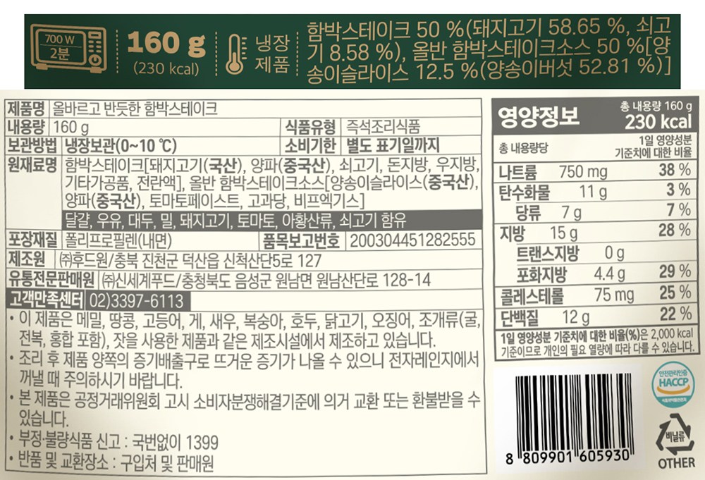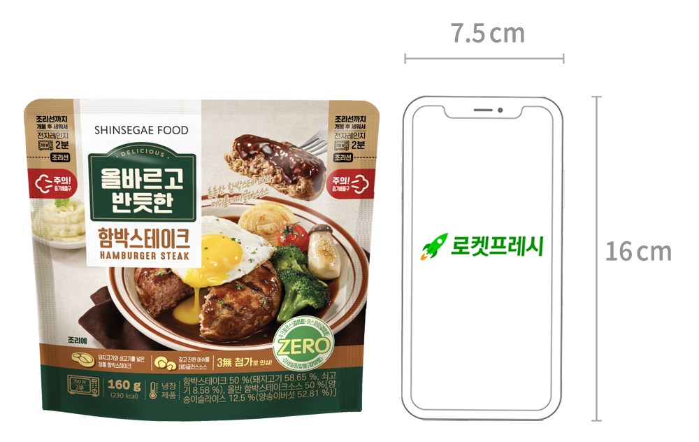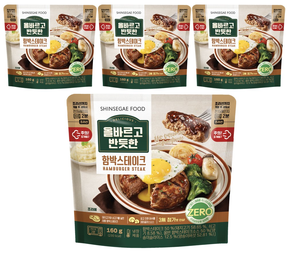 두툼한 두께의 함박스테이크예요. 달짝지근한 소스와 촉촉한 육즙이 어우러져 입맛을 사로잡지요. 재료를 손질하고, 반죽을 치댈 필요 없이 전자레인지로 조리하면 된답니다. 올바르고 반듯한 함박스테이크로 근사한 식탁을 손쉽게 만들어보세요.