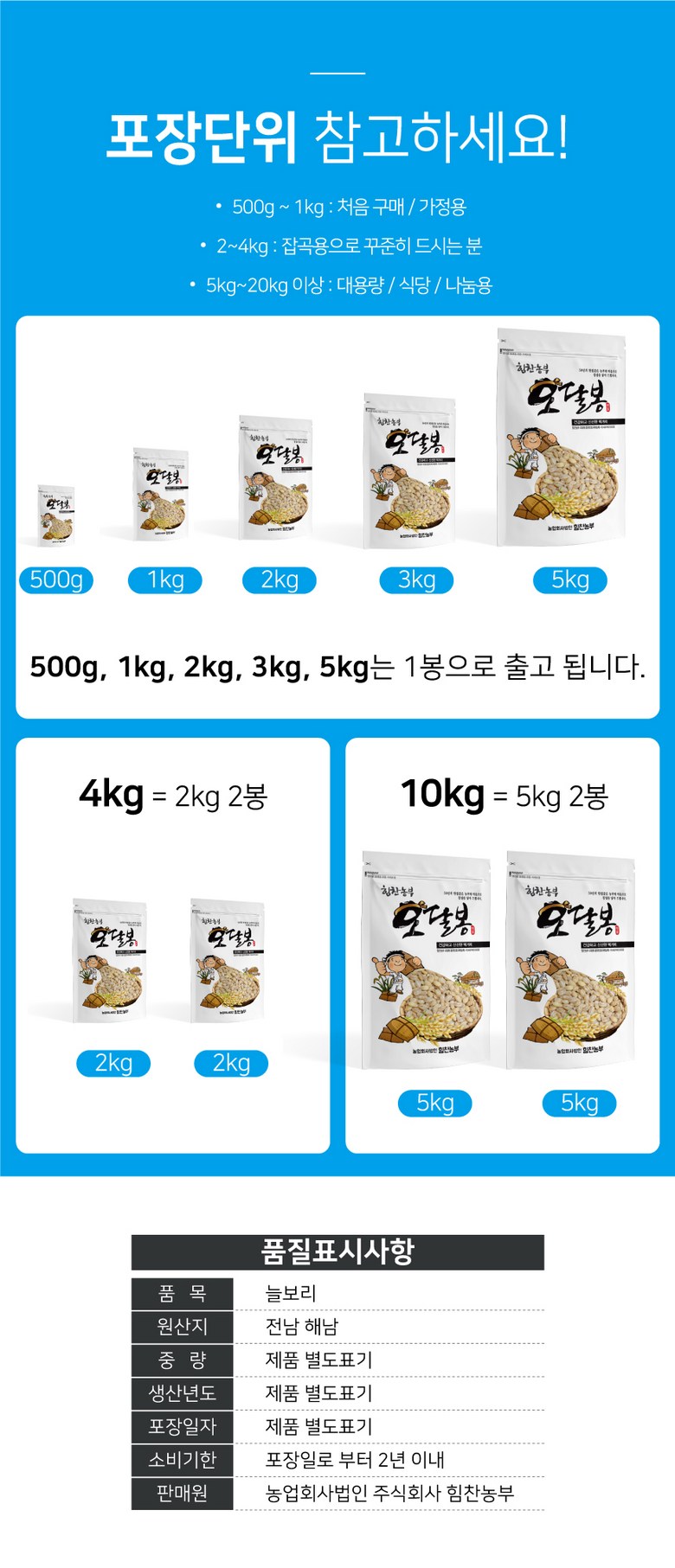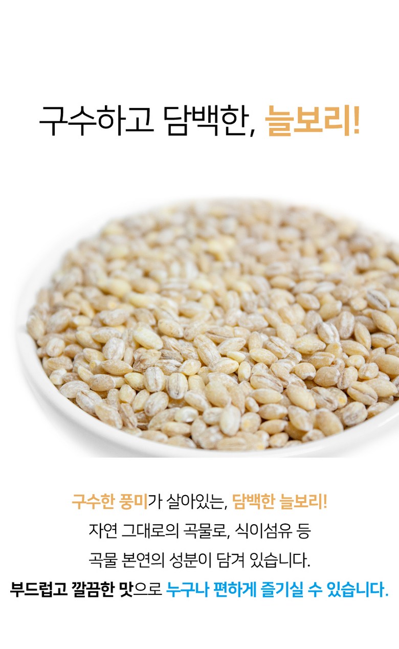 | 품목 또는 명칭 | 늘보리 | 포장단위별 내용물의 용량(중량),수량,크기 | 500g 1kg 2kg 3kg 4kg(2kg+2kg) 5kg 10kg(5kg+5kg) |