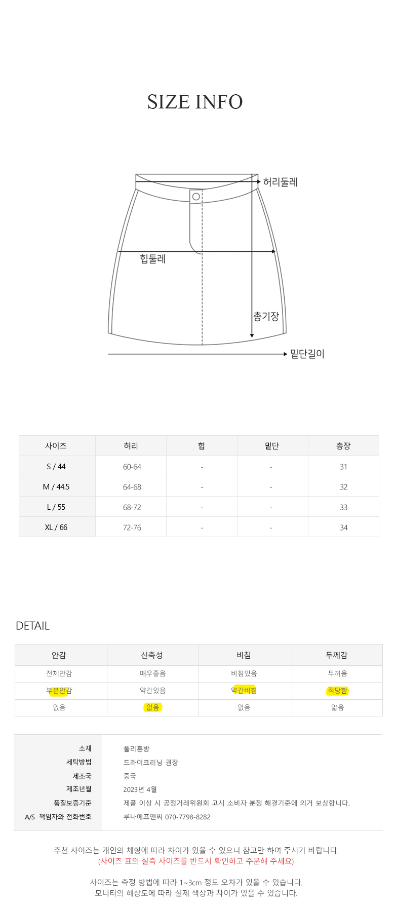 | 제조국 | 중국 | 세탁방법 및 취급시 주의사항 | 컨텐츠 참조 |