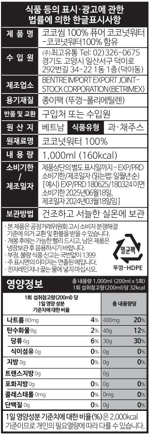 | 포장단위별 내용물의 용량(중량), 수량 | 1L x 4개 | 원재료명 및 함량 | 컨텐츠 참조 |