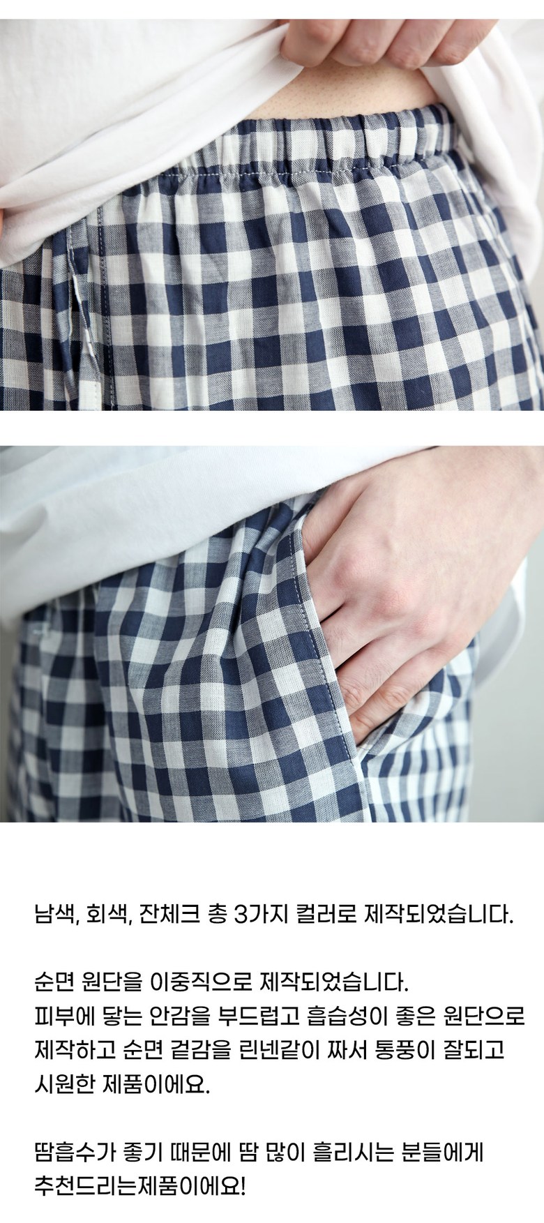 | 제품 소재 | 코튼 100% | 색상 | 남색, 회색, 잔체크 |