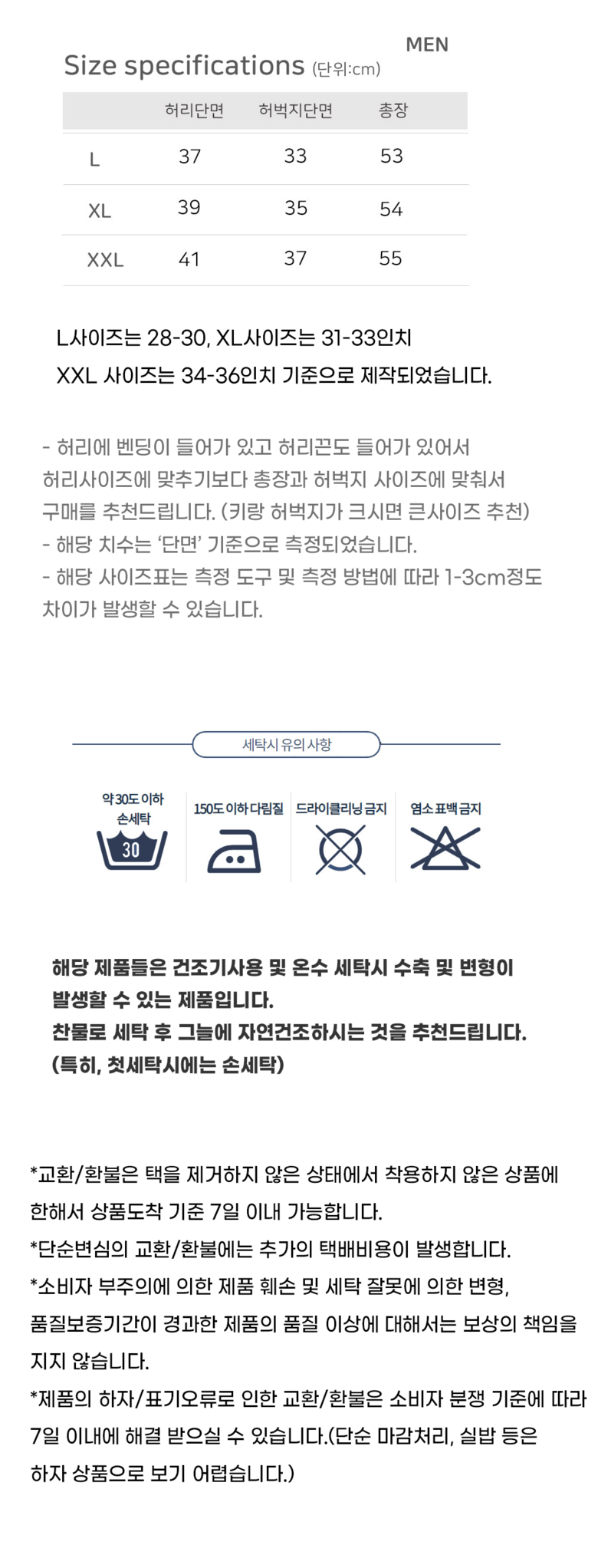 - ㆍ교환/반품에 관한 일반적인 사항은 판매자가 제시사항보다 관계법령이 우선합니다.