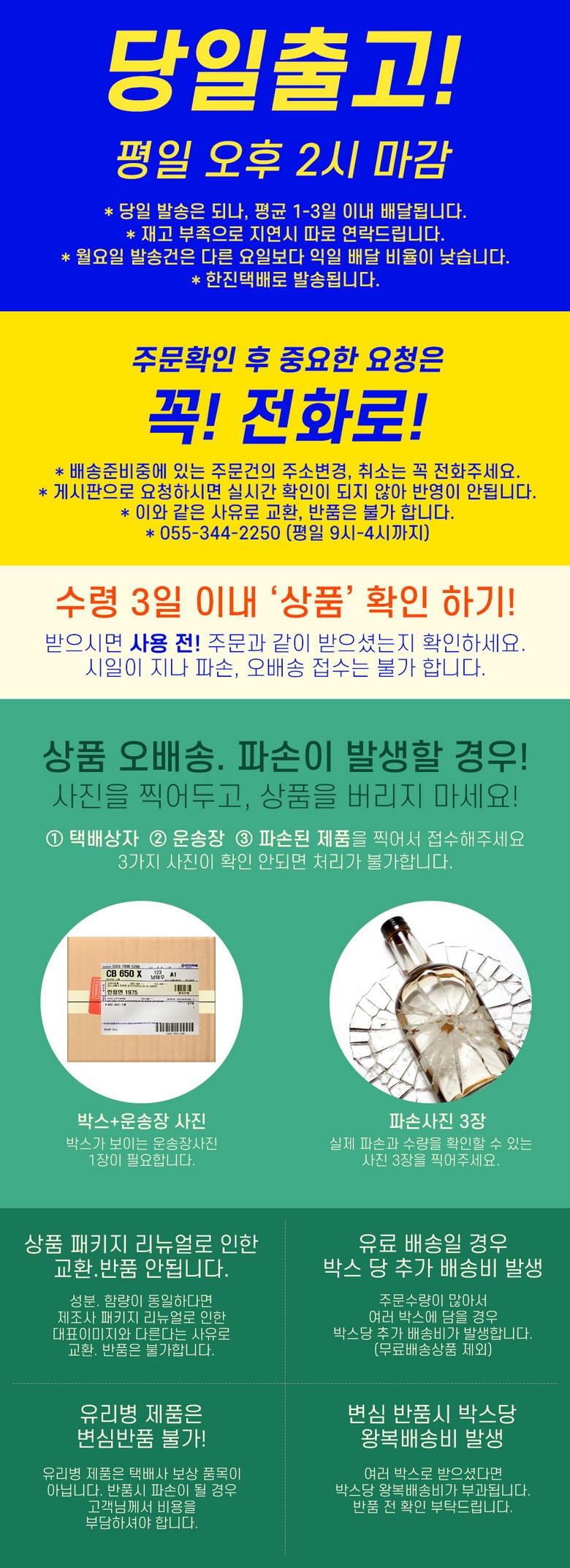 - ㆍ모니터 해상도의 차이로 인해 색상이나 이미지가 실제와 달라, 고객이 단순 변심으로 교환/반품을 무료로 요청하는 경우
