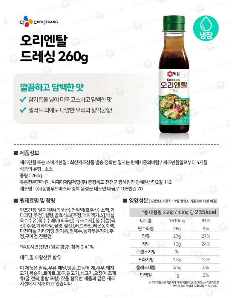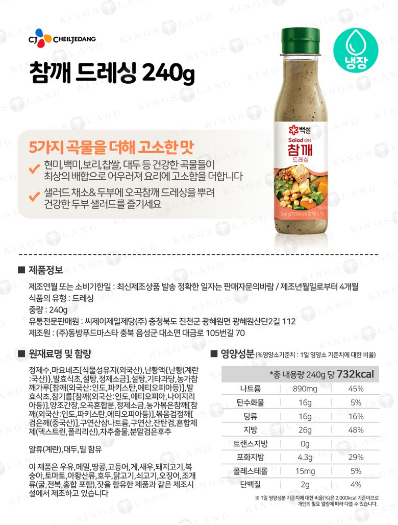 | 생산자 및 소재지 | 상품 상세페이지 참조 | 제조연월일, 소비기한 또는 품질유지기한 | 상품 상세페이지 참조 |