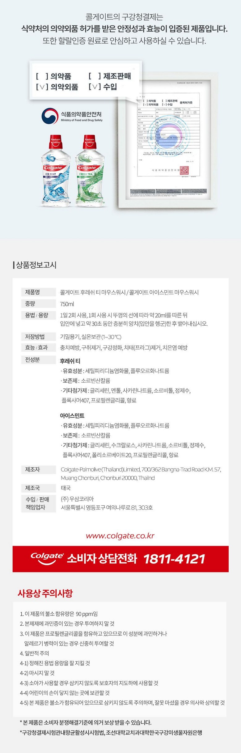 | 품명 및 모델명 | 콜게이트 아이스민트 마우스워시 | 인증/허가 사항 | . |