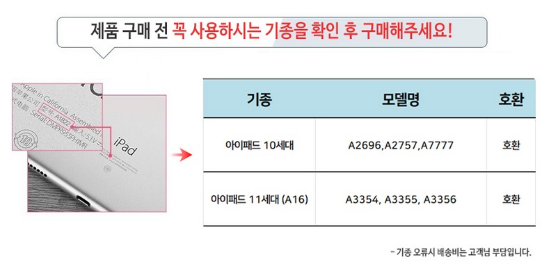 | 품명 및 모델명 | 아이패드 10세대 호환 10.9 인치 수납홀더 반투명 케이스 | 인증/허가 사항 | 해당사항무 |