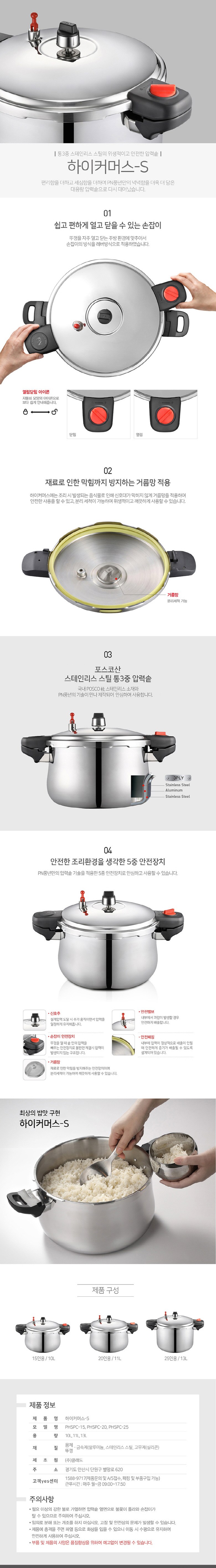 | 품명 및 모델명 | PN풍년 하이커머스S 스텐 통3중 업소용 압력밥솥 25인용 PHSPC-25 | 재질 | 컨텐츠 참조 |