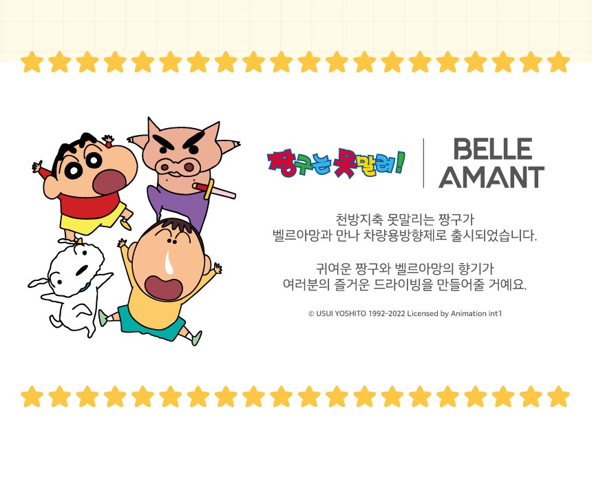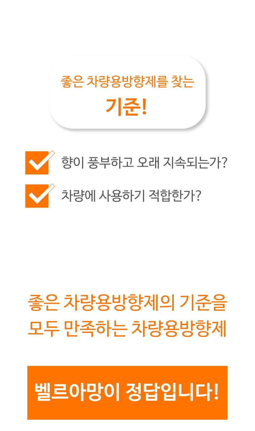 | 품목 및 제품명 | 방향제 / 벨르아망 차량용 방향제 (라벤더) | 용도(표백제의 경우 계열을 함께표시) 및 제형 | 일반용 (실내공간용), 자동차용 (실내용) / 함침물형 |