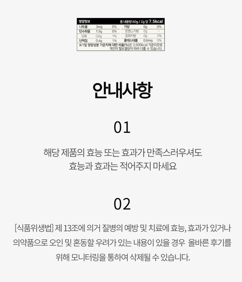 | 제품명 | 상품 상세페이지 참조 | 식품의 유형 | 상품 상세페이지 참조 |