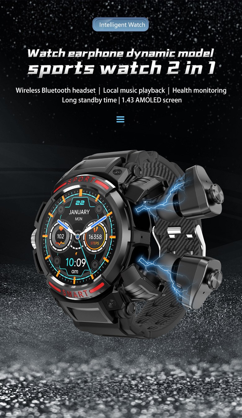 GT100 스마트 워치 TWS 블루투스 헤드셋 2-in-1 NFC 페이 50일 추가 롱 샌드바이 100+ 스포츠 모드 이중 통화