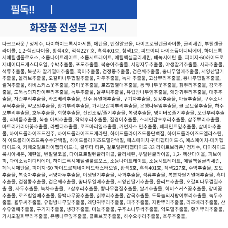 | 화장품제조업자, 화장품책임판매업자 및 맞춤형화장품판매업자 | 상품 상세페이지 참조 | 제조국 | 상품 상세페이지 참조 |