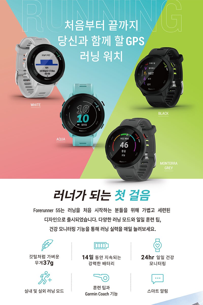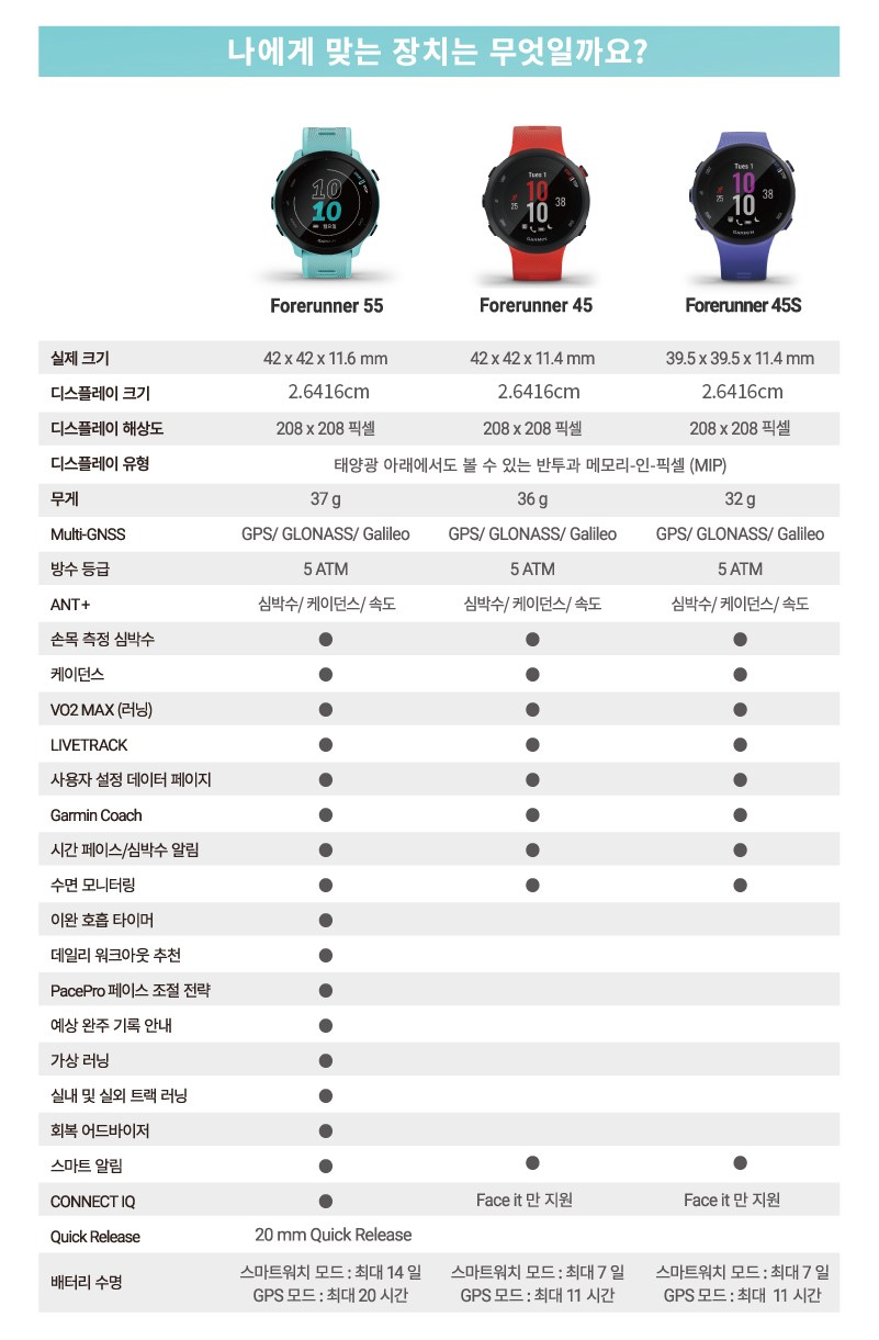 | 품명 및 모델명 | 가민 포러너 55 러닝 스마트워치 / A04162 | KC 인증정보 | 본품 : R-C-GRm-A04162 / 전지 : YU10298-20019 |