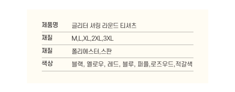 | 품명 및 모델명 | 글리터 셔링 반팔복 | 인증/허가 사항 | 해당사항없음 |