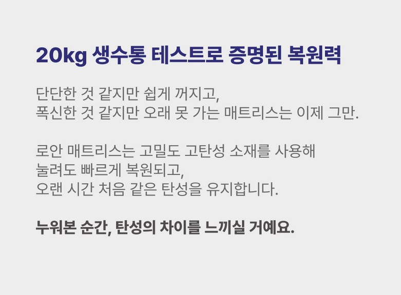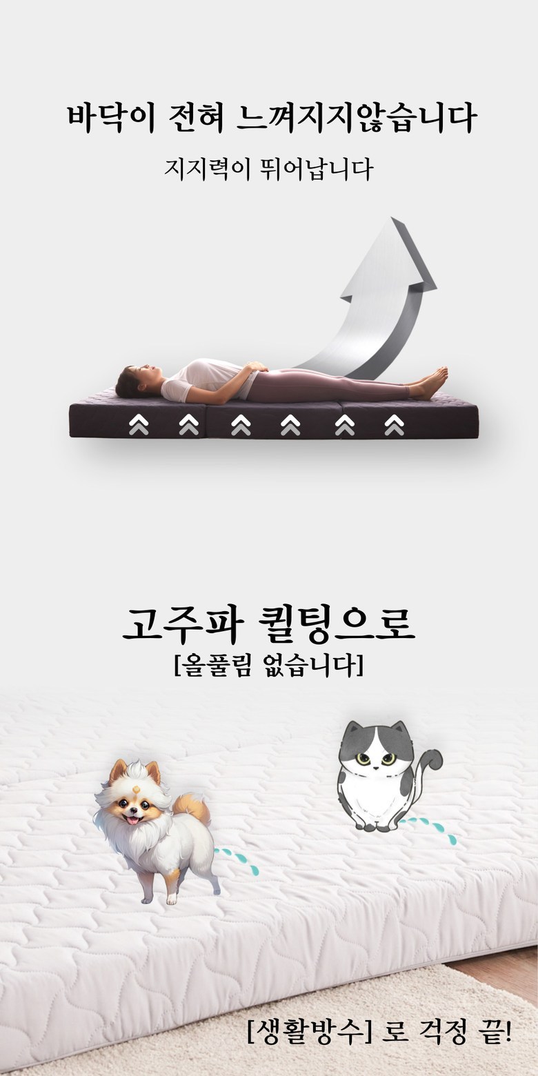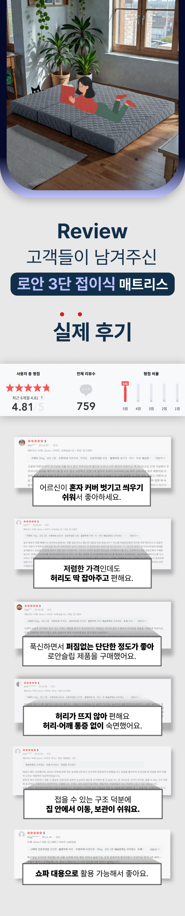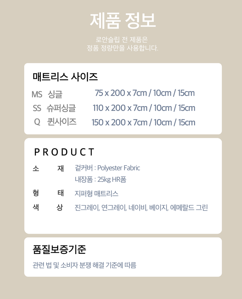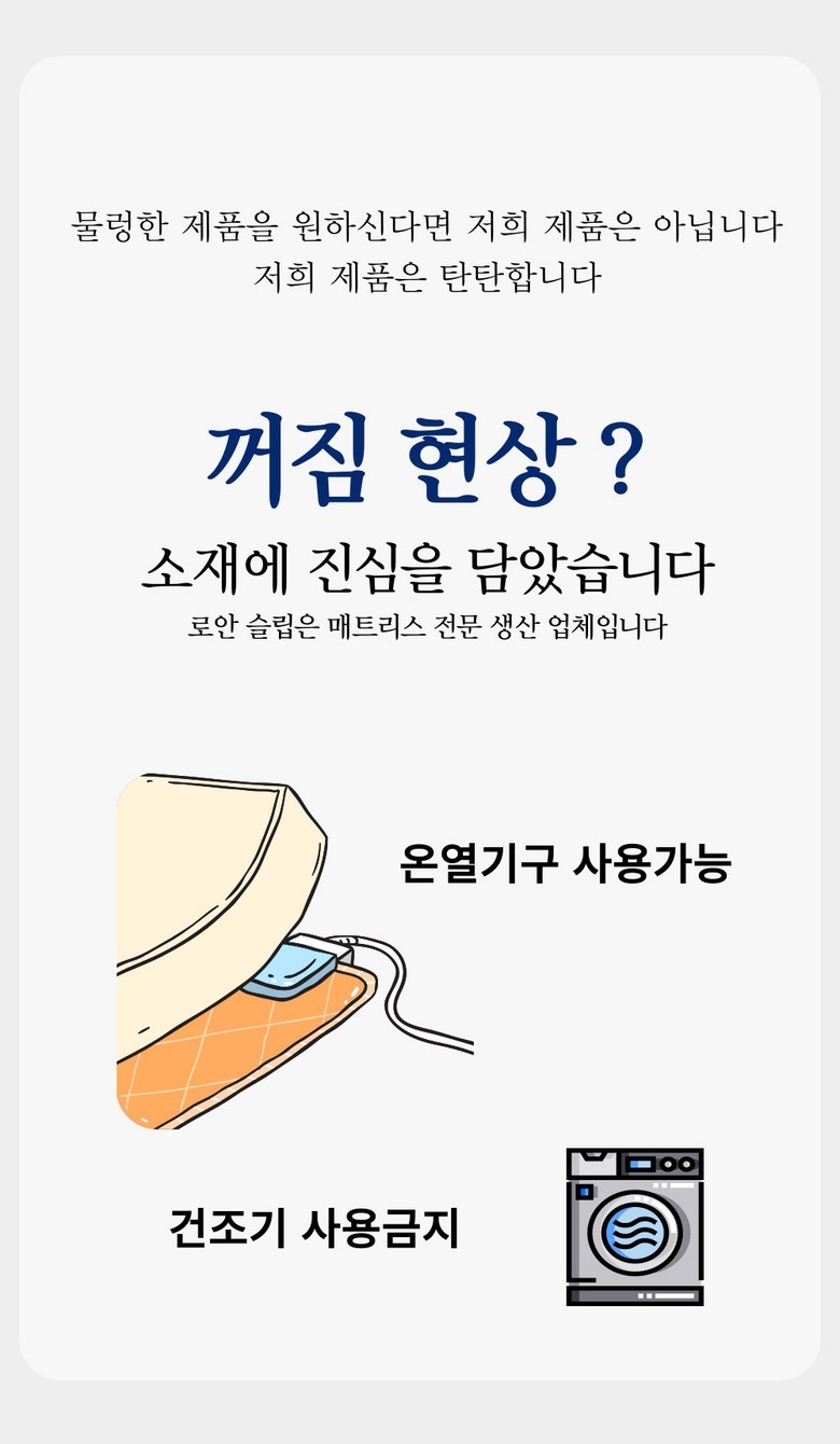 | 주요 소재 | 방수 코팅 원단, HR폼 밀도 26kg | 제조자(수입자) | 로안슬립 |