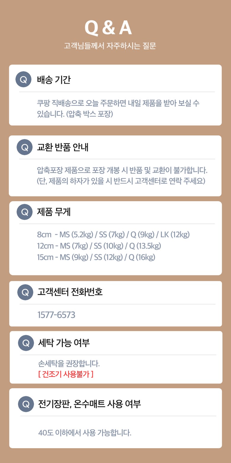 | 소비자상담 및 교환반품 문의 | 쿠팡고객센터 1577-7011 배송 및 환불/교환에 대한 문의는 마이쿠팡-고객센터 내 상담하기를 이용해주세요. | ||