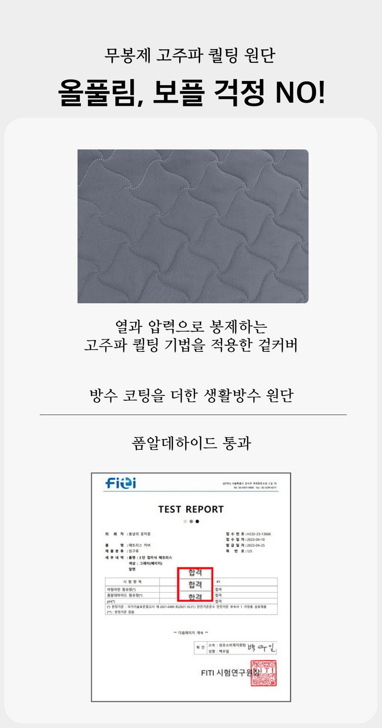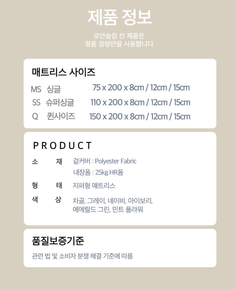 | 주요 소재 | 방수 겉커버,HR폼 밀도26kg | 제조자(수입자) | 로안슬립 |