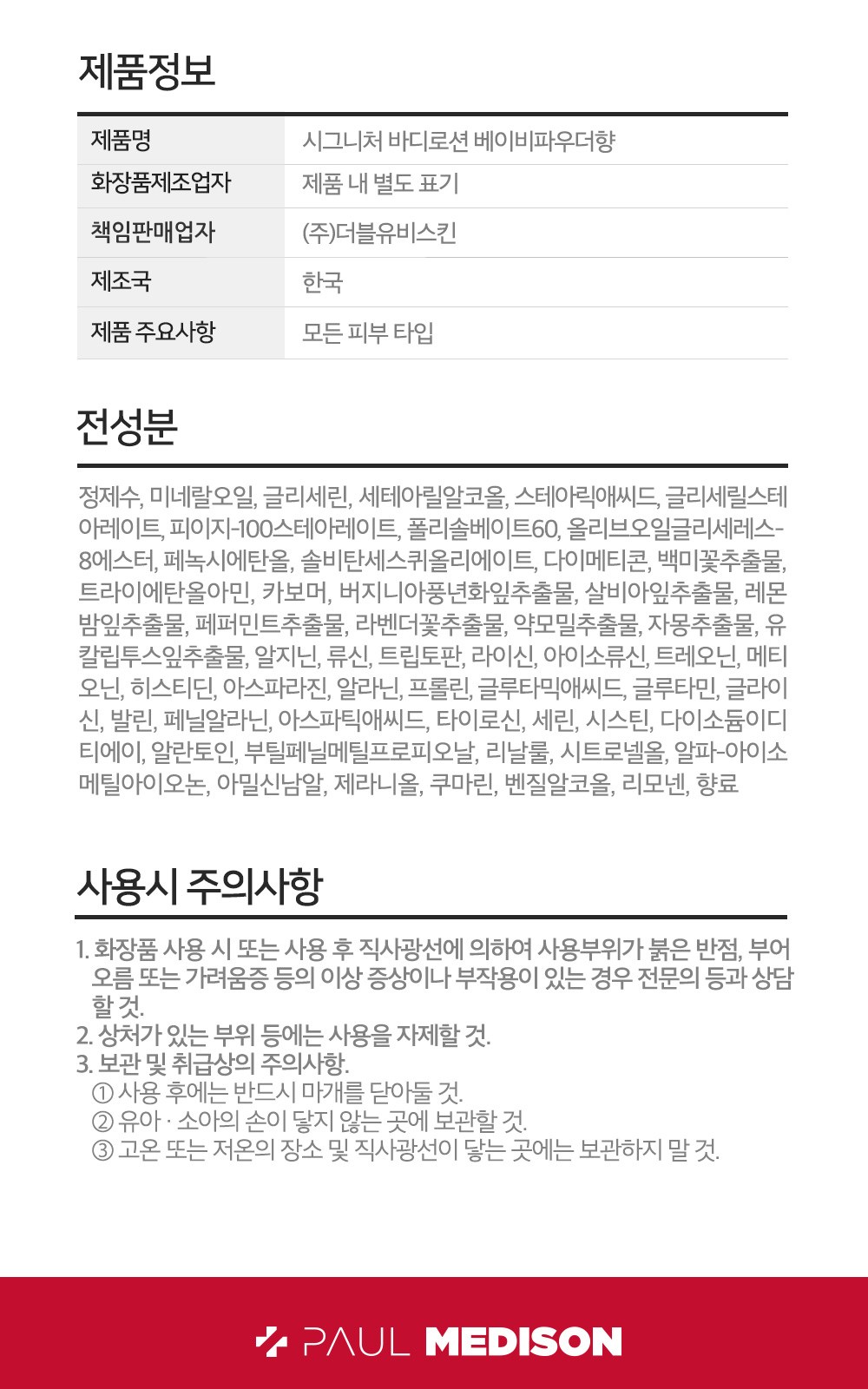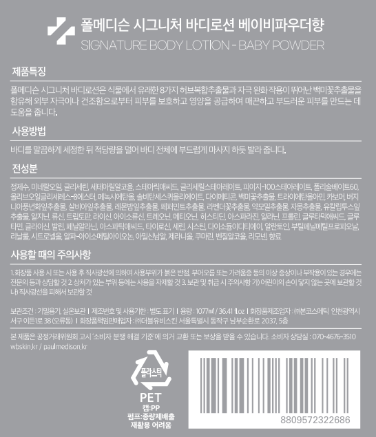 | 용량(중량) | 1077ml | 제품 주요 사양 | 모든 피부용 |