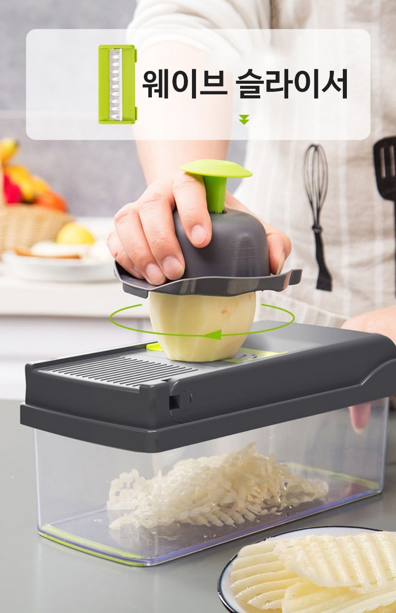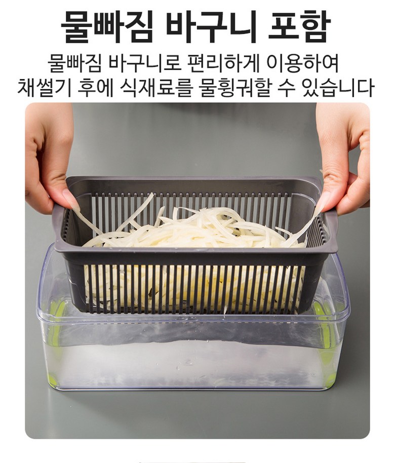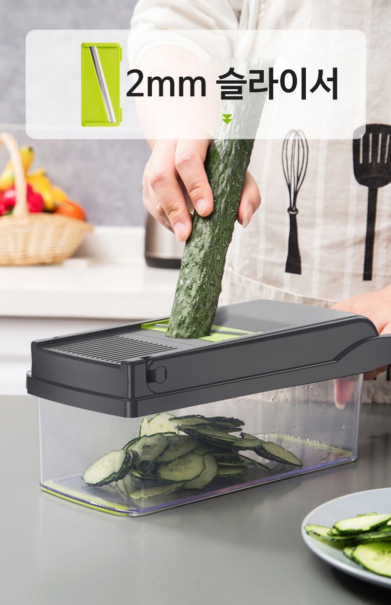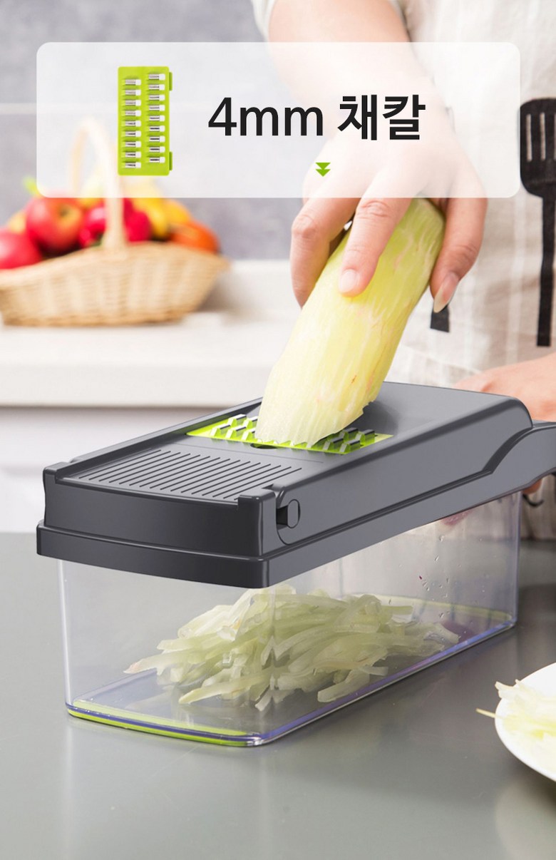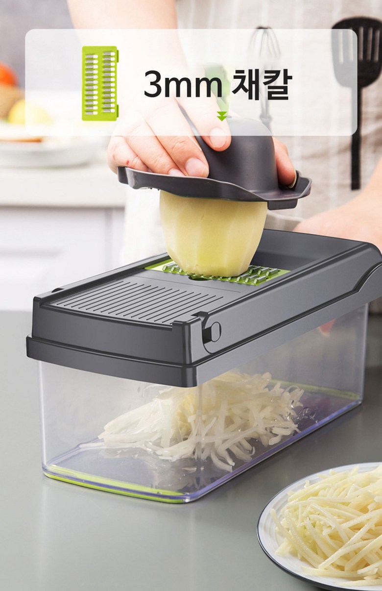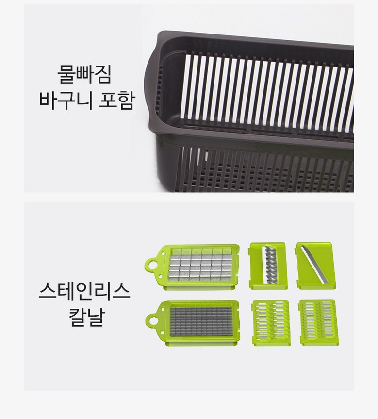| 구성품 | 제품 본체+7가지 채칼+보호 손잡이+청소솔 | 크기 | 13*22*12cm |