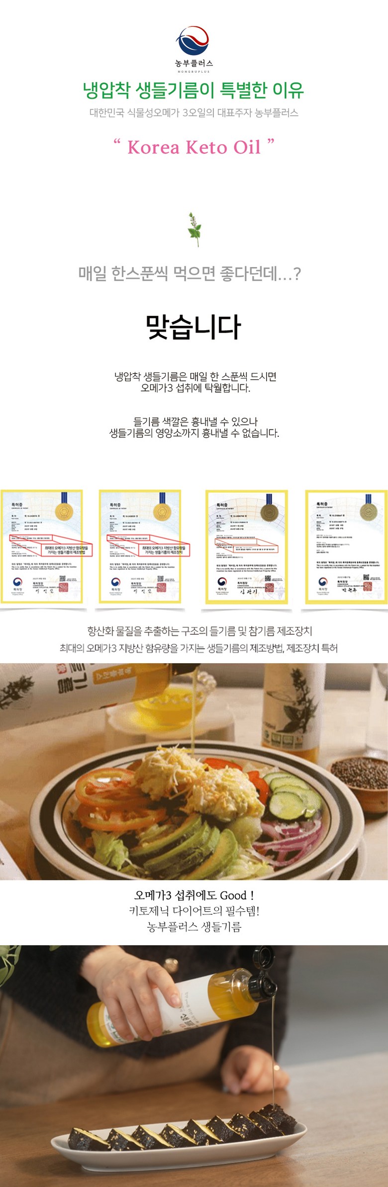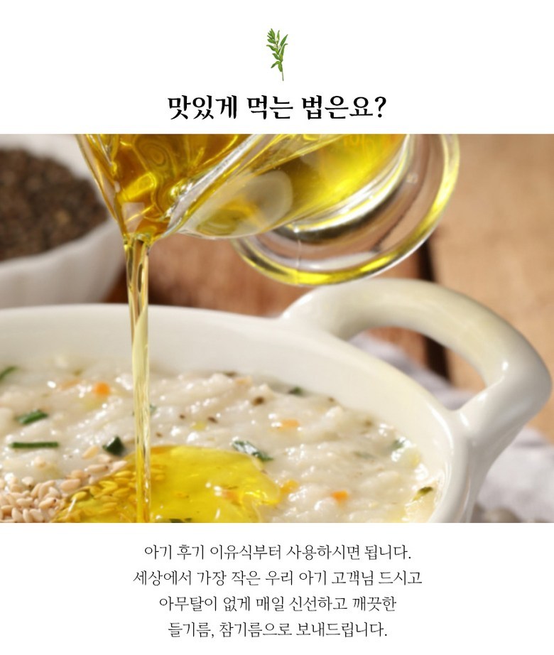 | 제품명 | 상품 상세페이지 참조 | 식품의 유형 | 생들기름 |