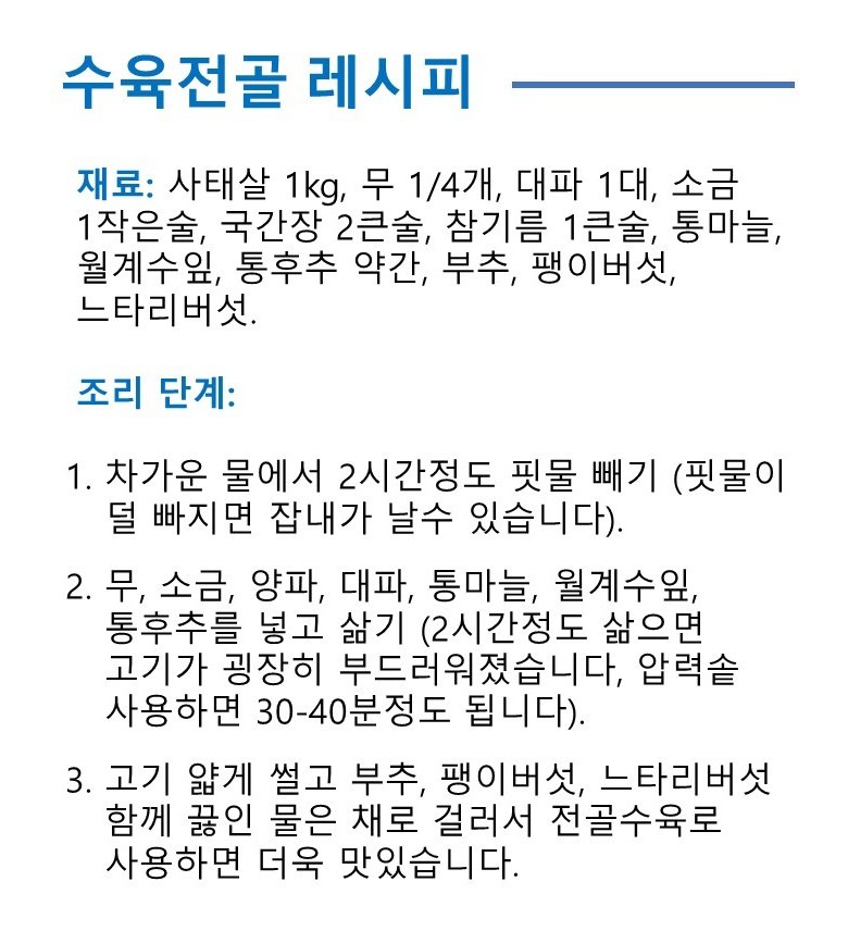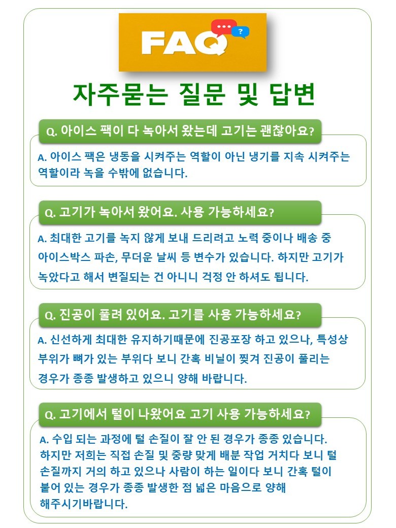 | 배송방법 | 신선/냉장/냉동 | 배송비 | 무료배송 · 도서산간 추가 배송비 - 제주 지역: 3,000원 - 도서산간 지역: 5,000원 |