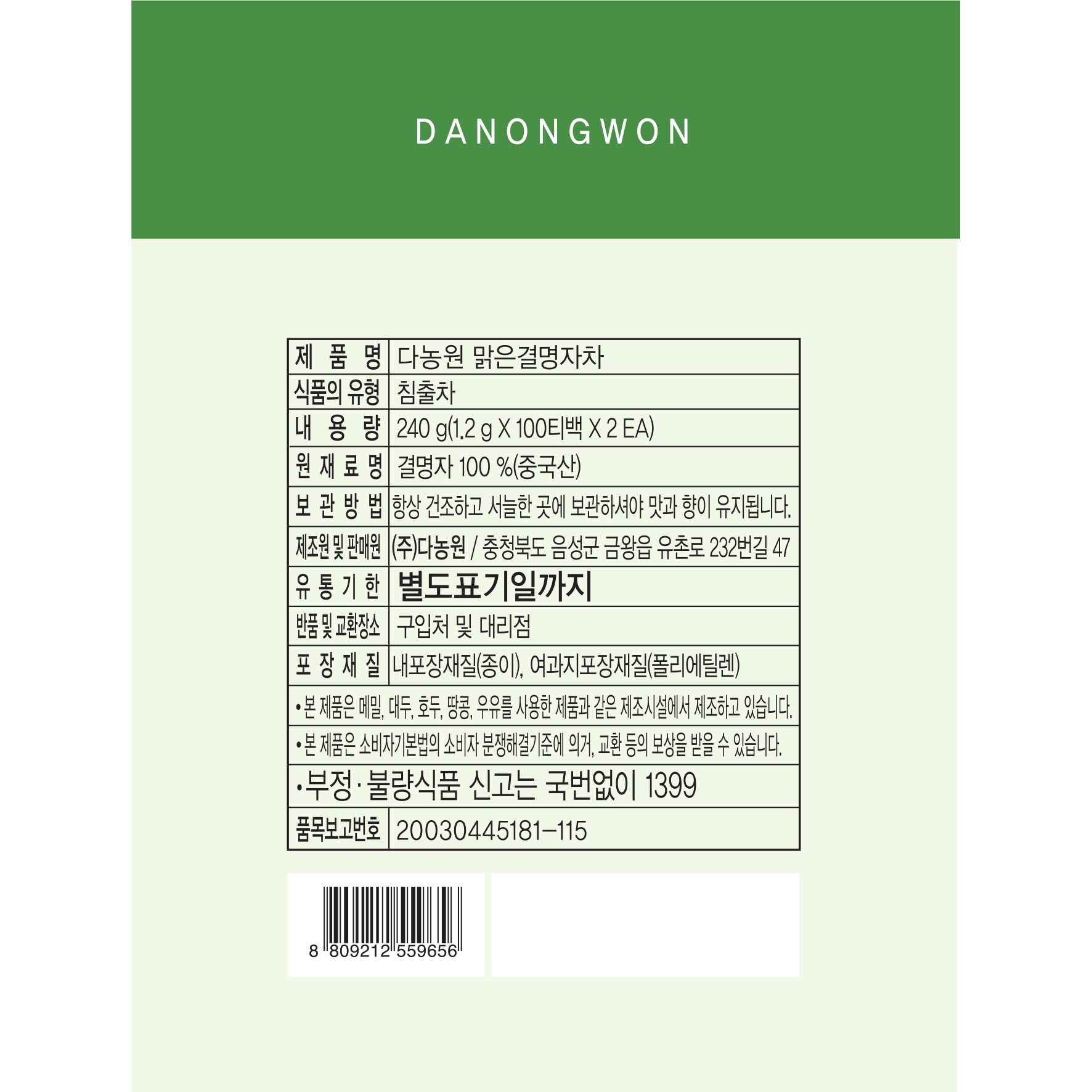 | 제품명 | 다농원 맑은결명자차 | 식품의 유형 | 침출차 |