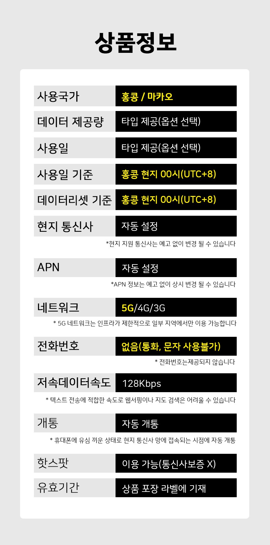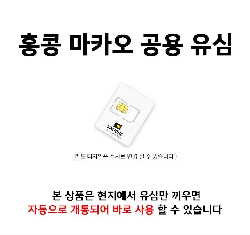 | 품명 및 모델명 | SIMTONG 홍콩 마카오 공용 유심 | 인증/허가 사항 | 해당없음 |