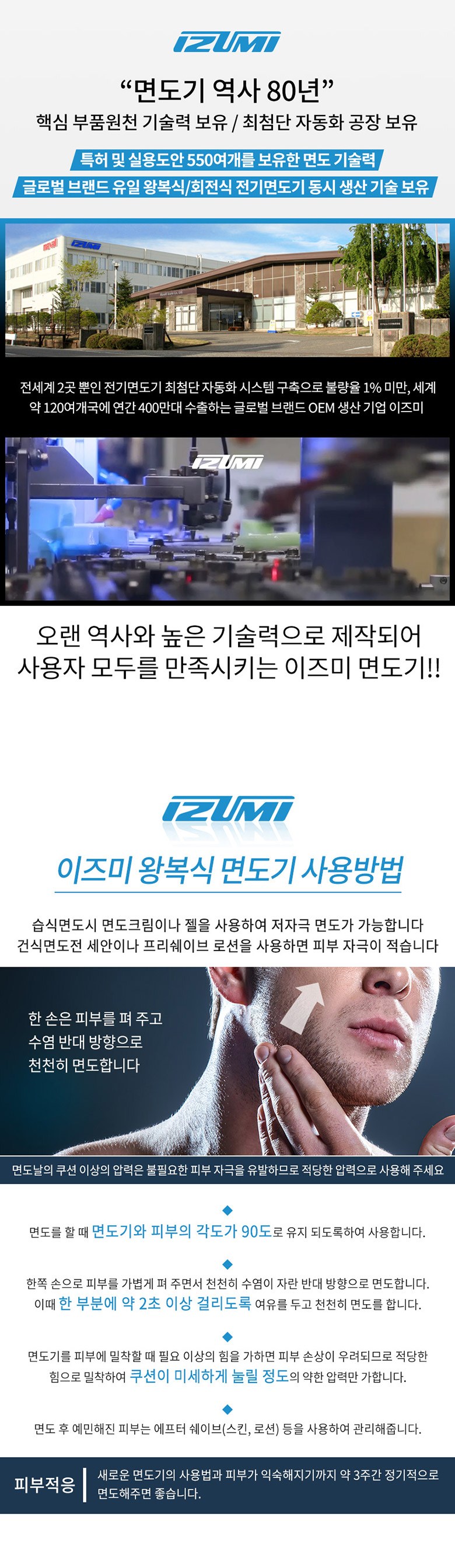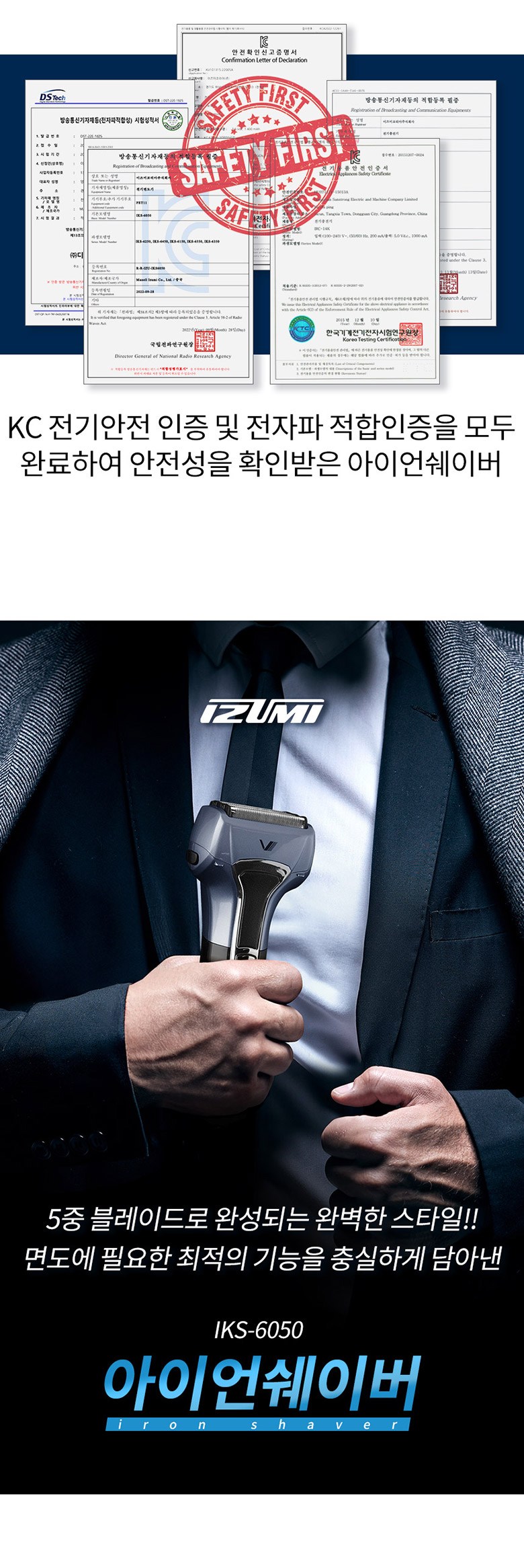 | 품명 및 모델명 | 이즈미 전기면도기 아이언쉐이버 IKS-6050 | KC 인증정보 | 상품 상세페이지 참조 |