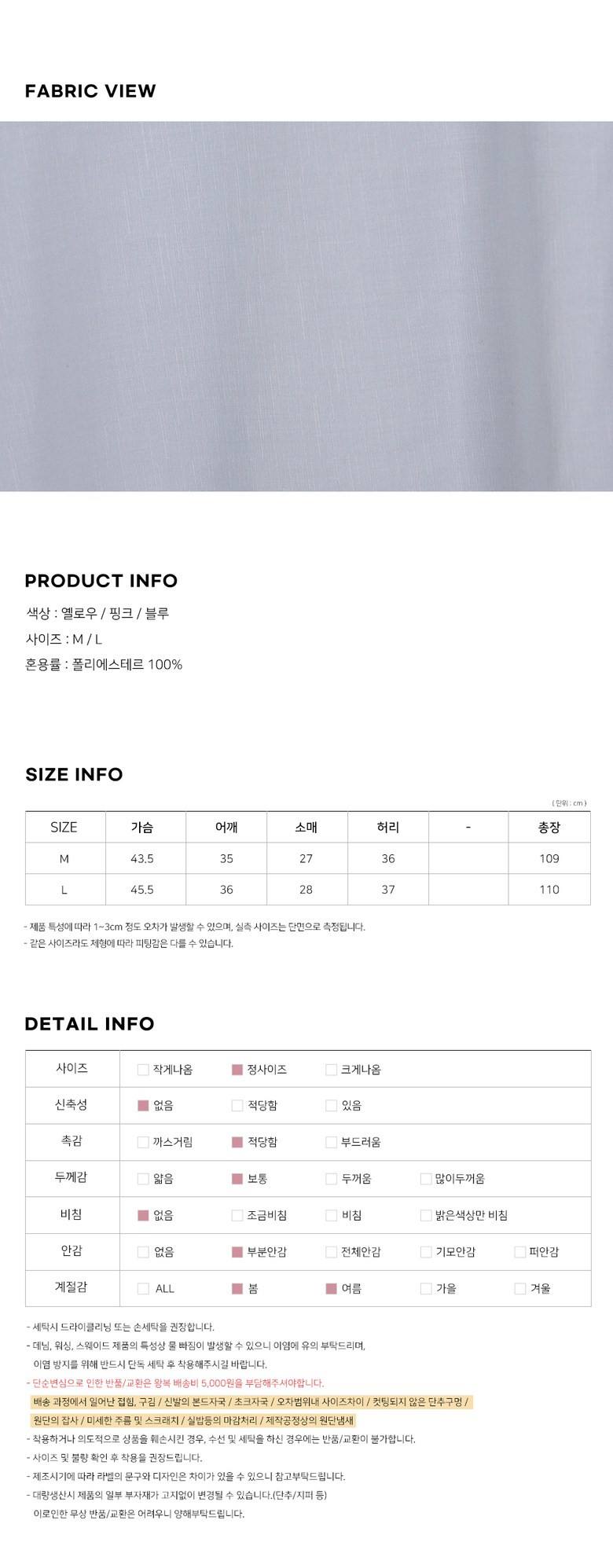 - 소매 길이: 반소매(어깨~팔꿈치 길이)