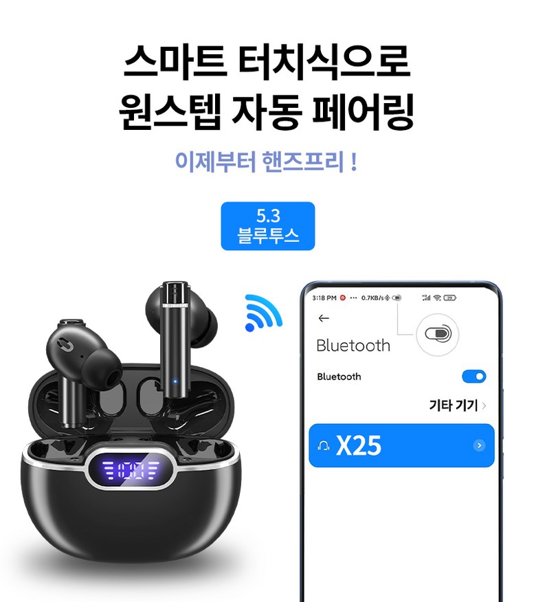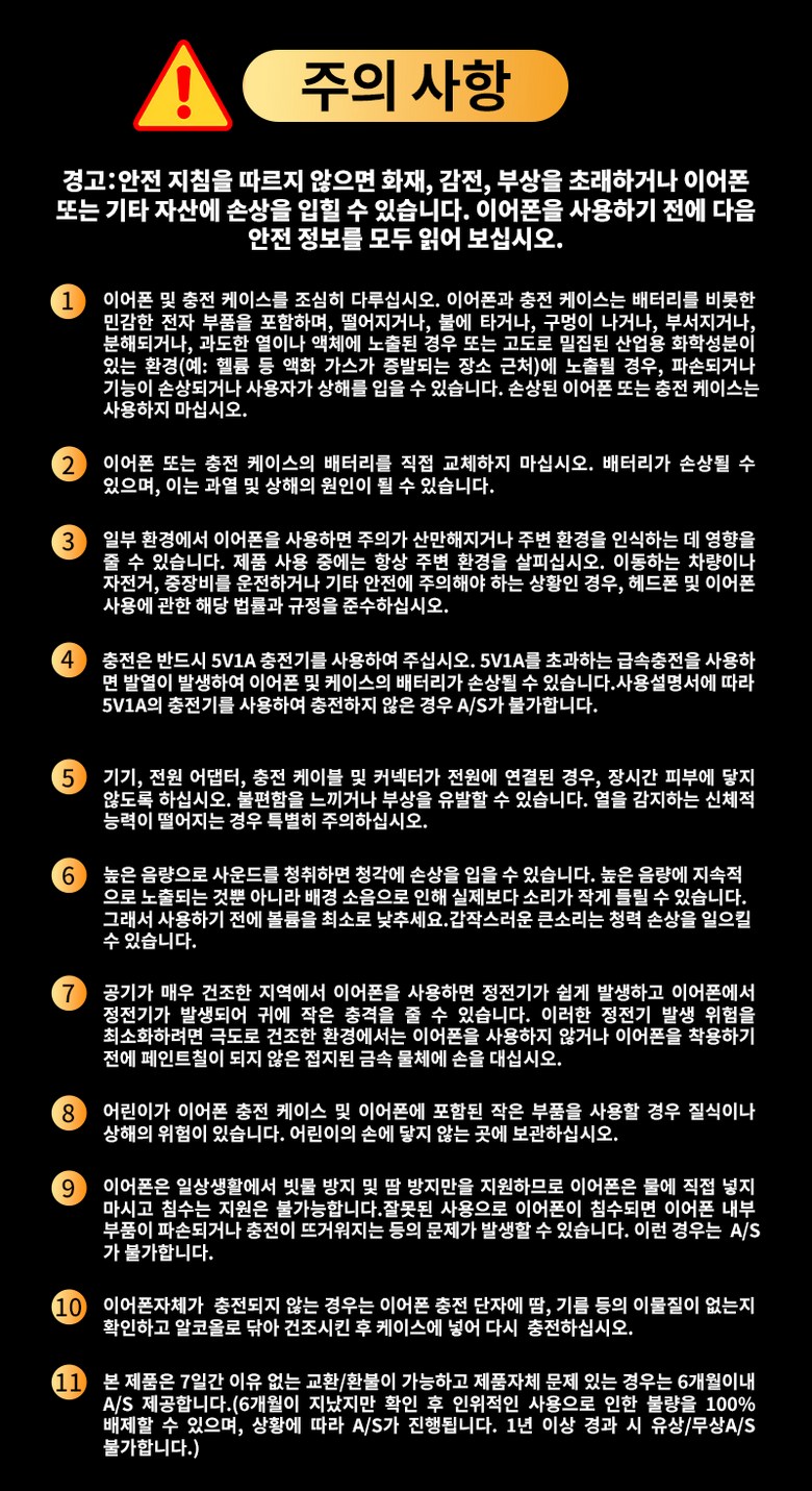 | 품명 및 모델명 | Mankiw 맨큐 무선 블루투스 이어폰 / X25 | KC 인증정보 | 본품: R-R-H7y-X08 / 크래들 전지 : XU101088-18007M / 이어폰 전지: XU101088-18007M |