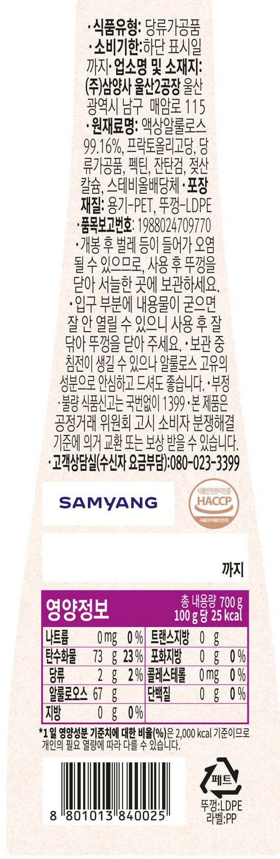 | 제품명 | 알룰로스 | 식품의 유형 | 당류가공품 |