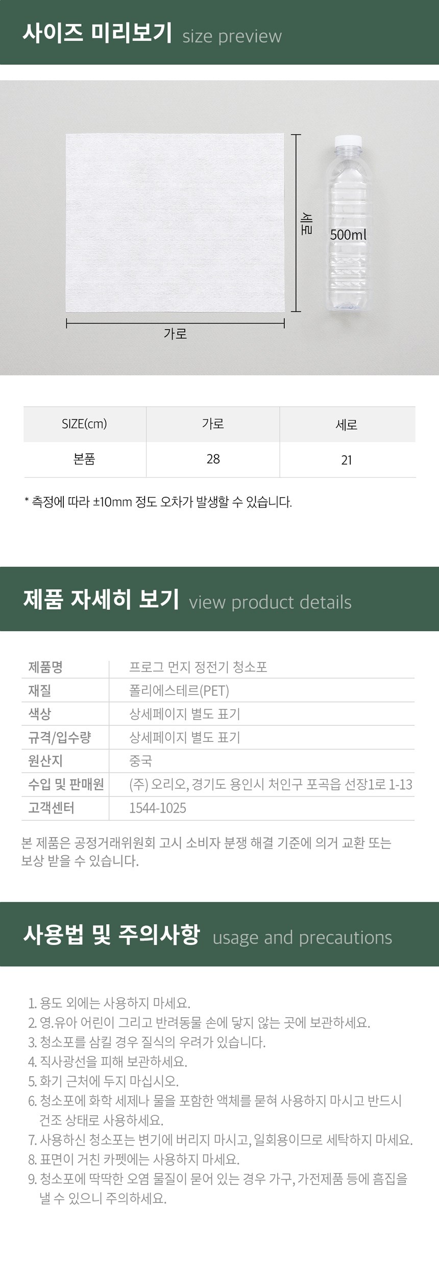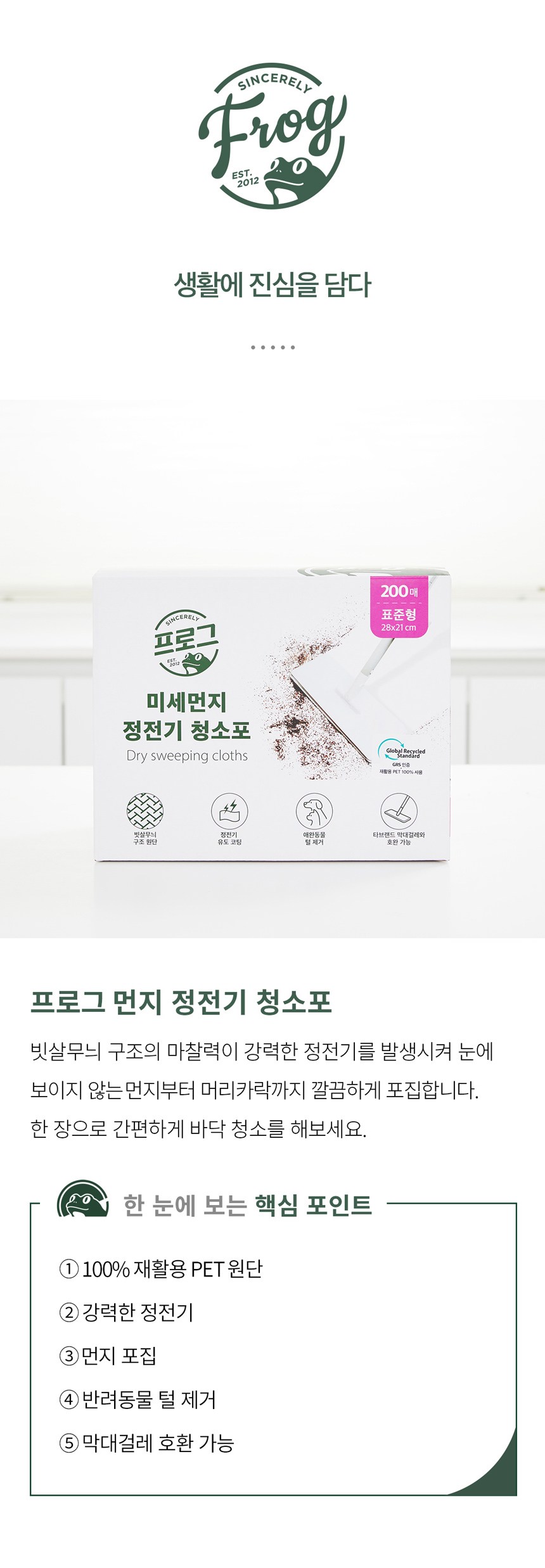 | 품명 및 모델명 | 프로그 먼지 정전기 청소포 표준형 200매 | 인증/허가 사항 | 해당없음 |