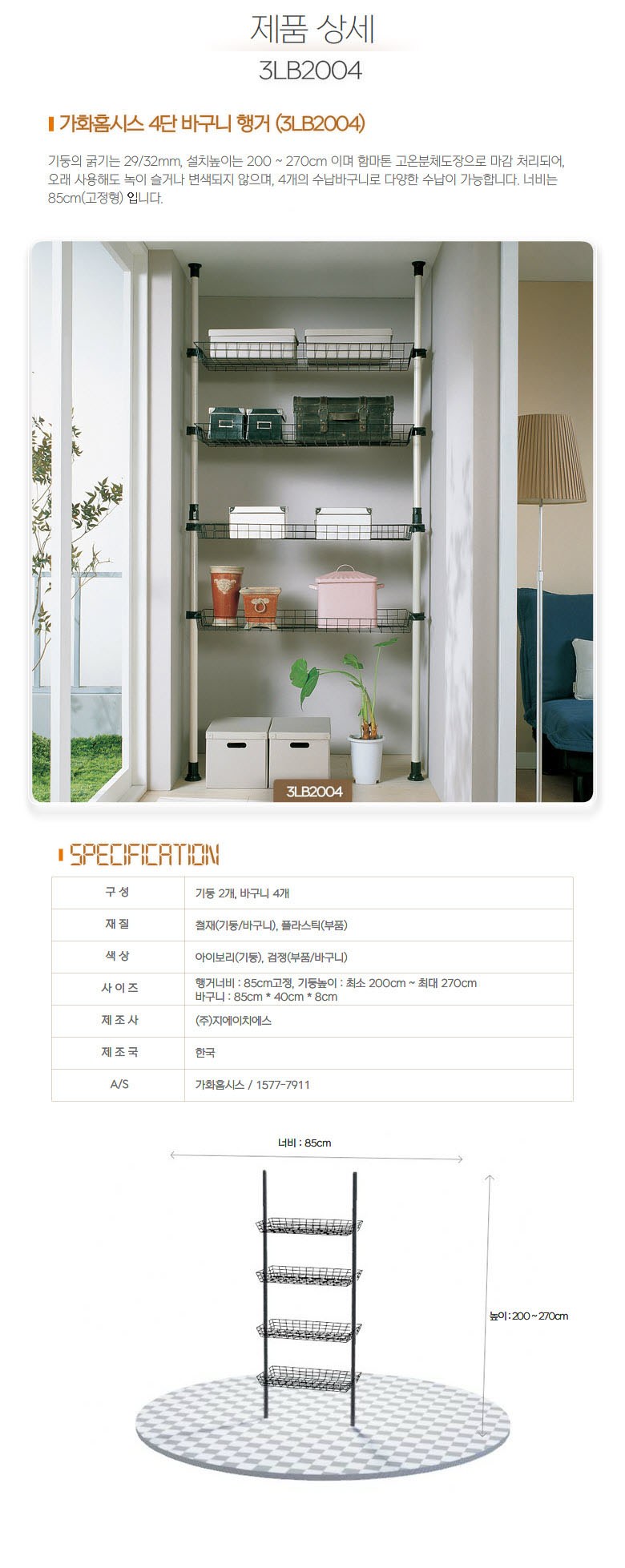 | 품명 | 가화홈시스 국내생산 4단 바구니 행거 세트 | KC 인증정보 | 해당없음 |