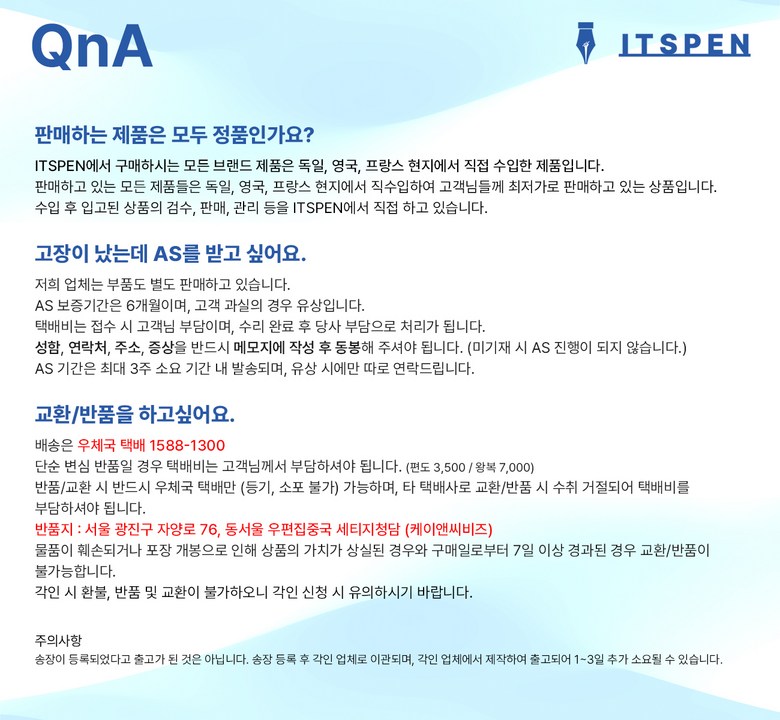 - 상품문의 및 후기게시판을 통해 취소나 환불, 반품 등은 처리되지 않습니다.