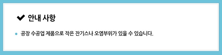 - ㆍ교환/반품에 관한 일반적인 사항은 판매자가 제시사항보다 관계법령이 우선합니다.