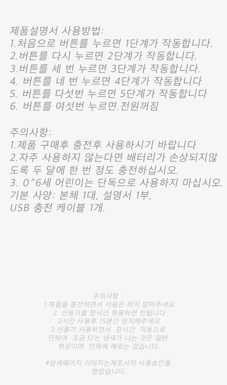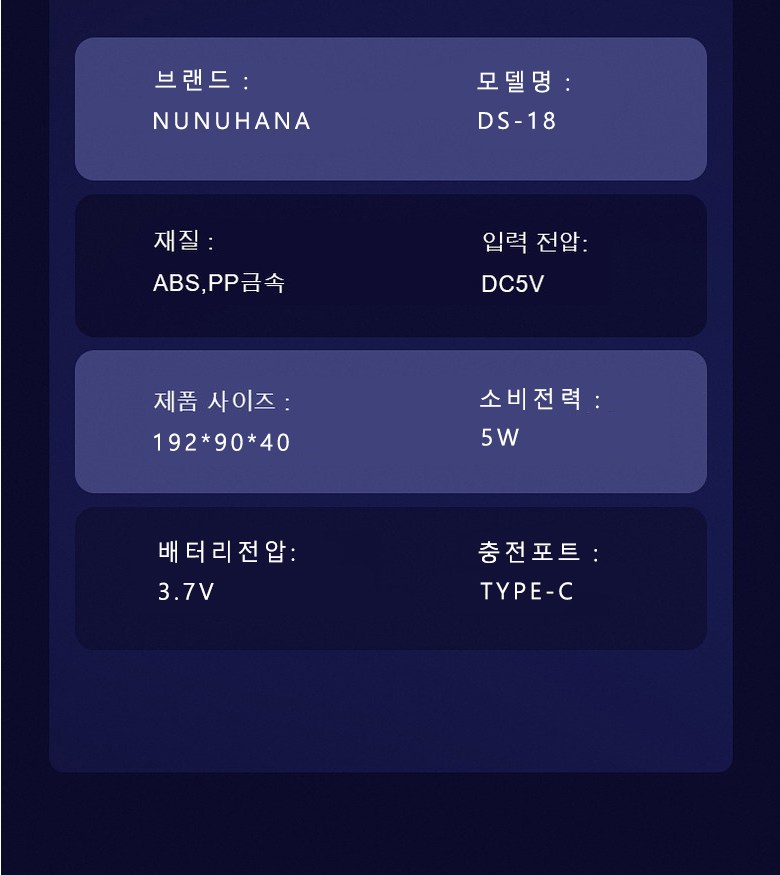 - 전원공급방식: USB 충전식
