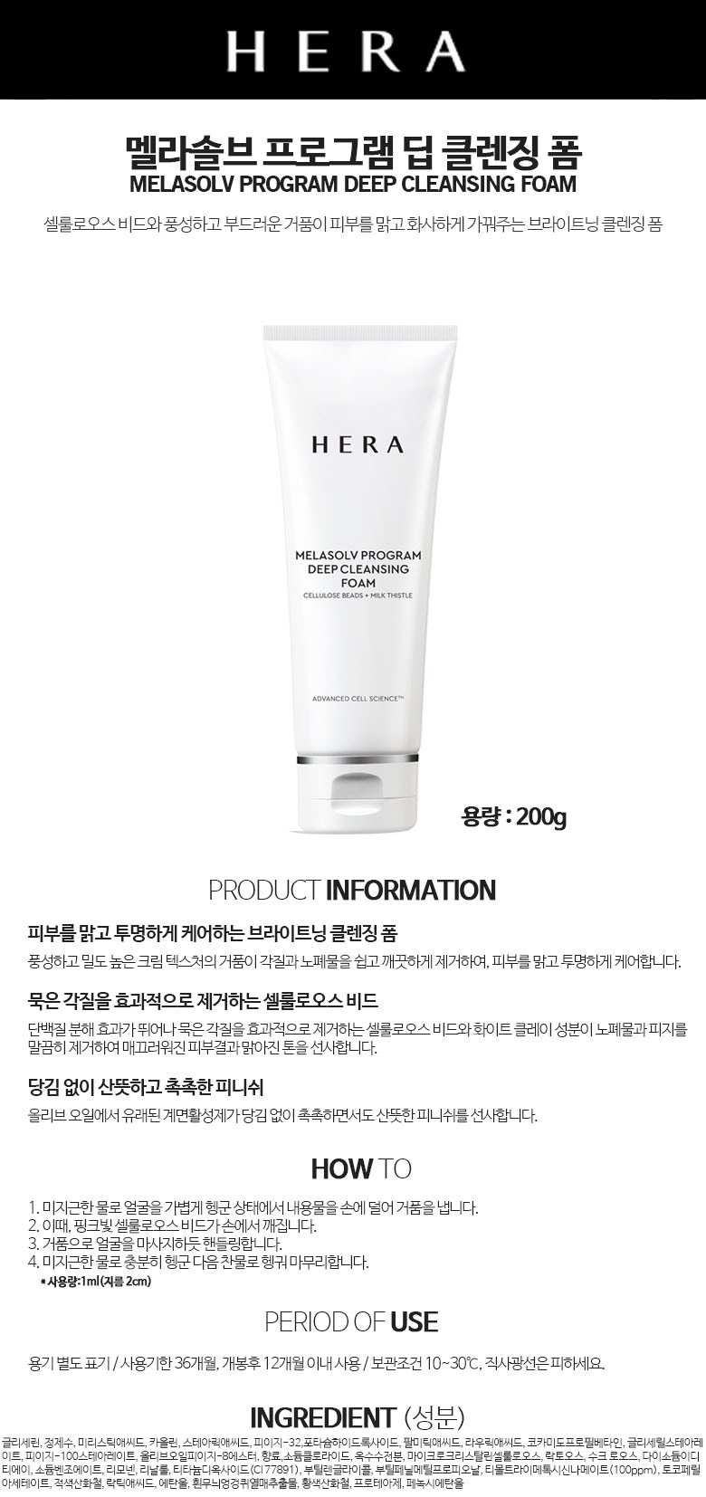 | 용량(중량) | 200g | 제품 주요 사양 | 모든피부용 |