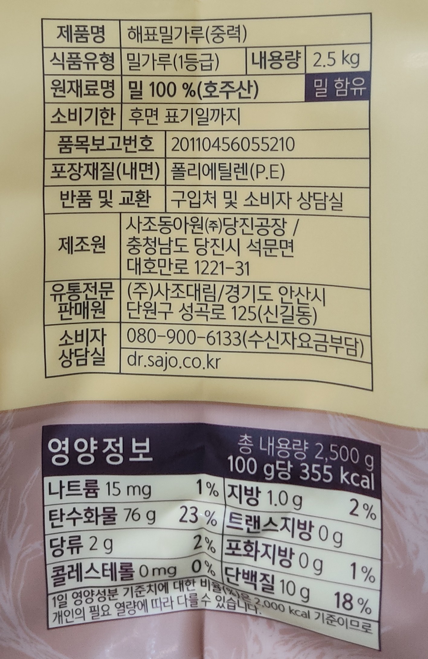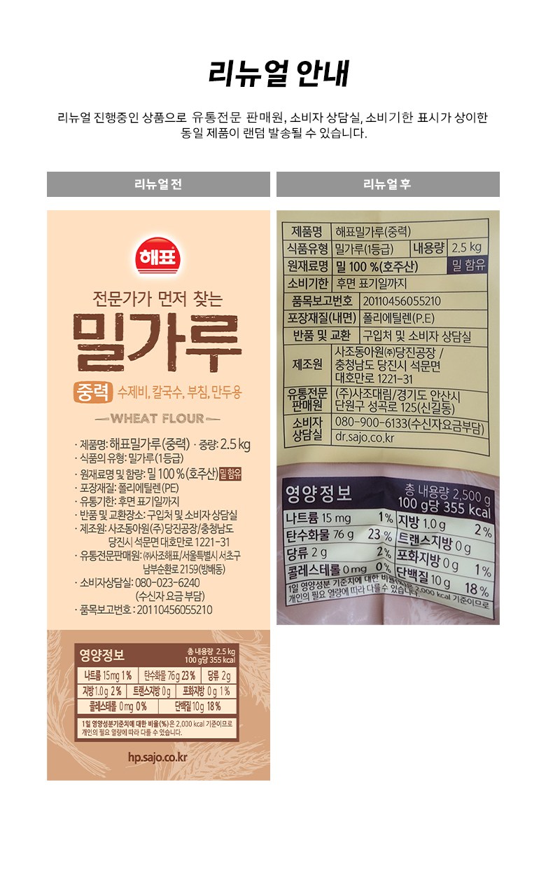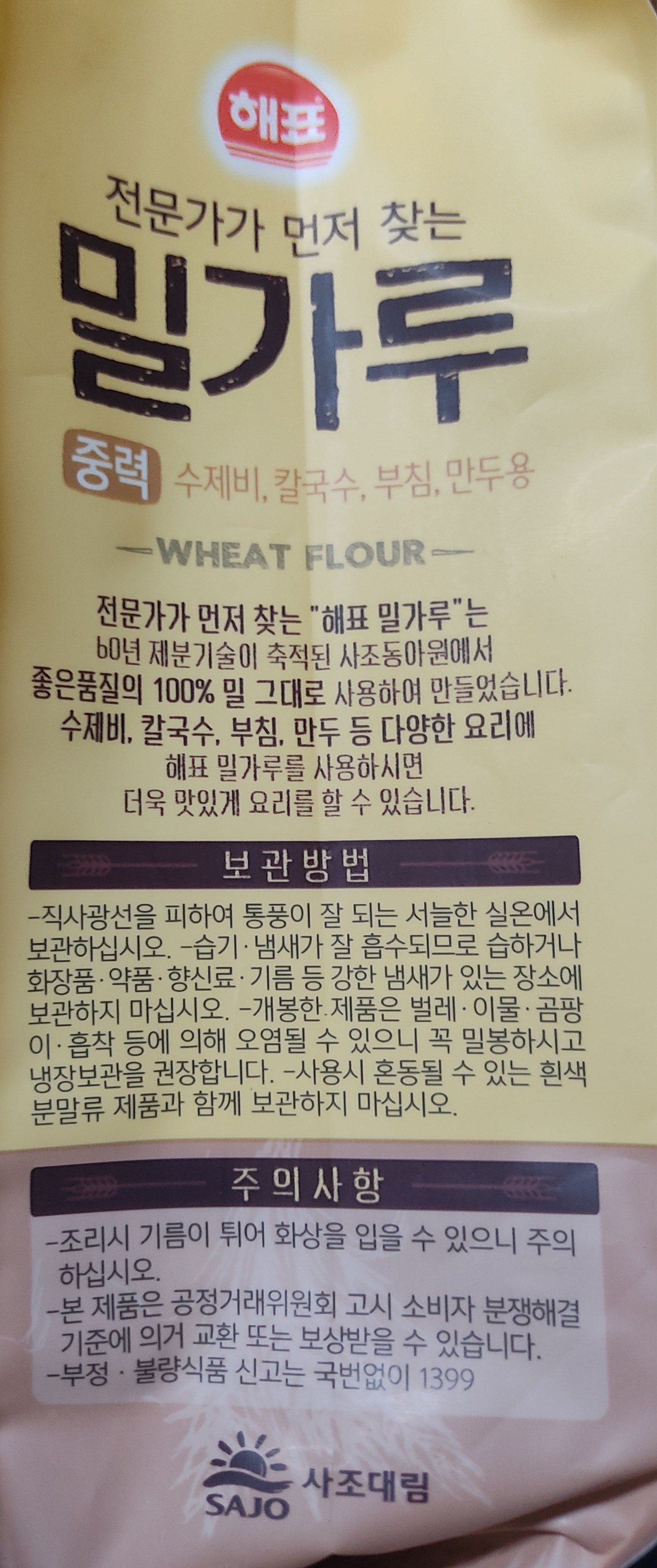 - 밀가루 용도: 중력분(다용도)