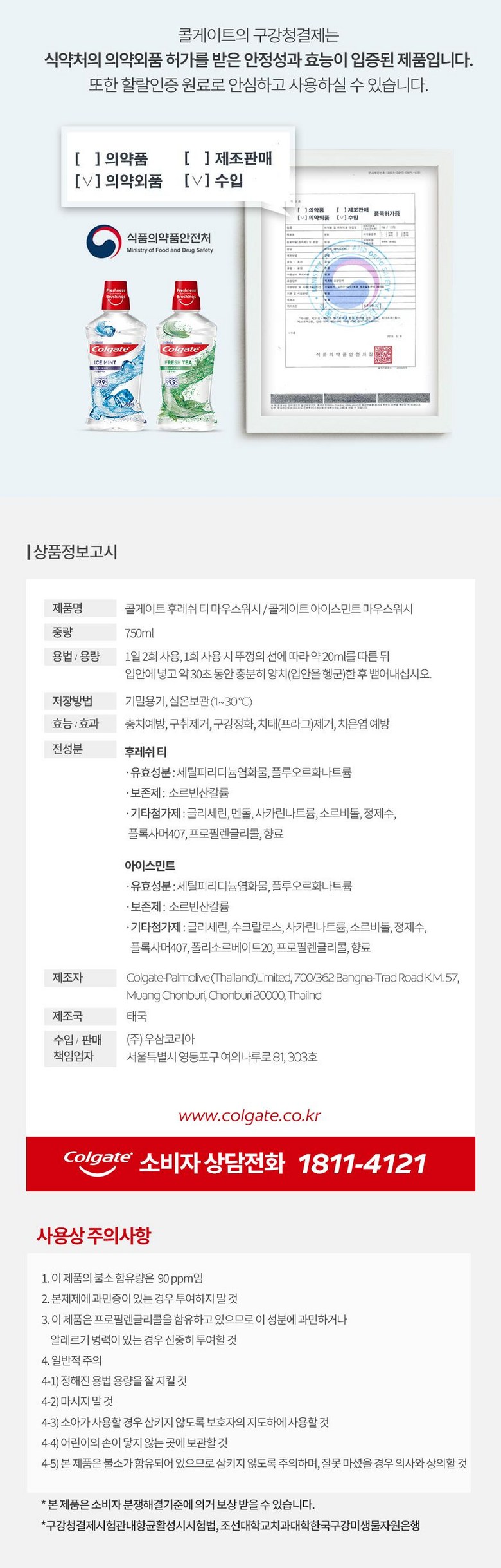 - 구강청결제 향: 허브향