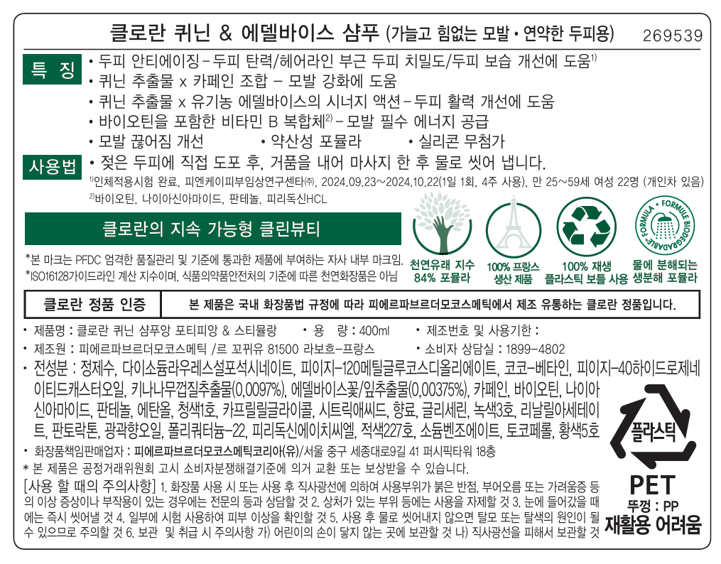 | 화장품제조업자, 화장품책임판매업자 및 맞춤형화장품판매업자 | 컨텐츠참조 | 제조국 | 프랑스 |