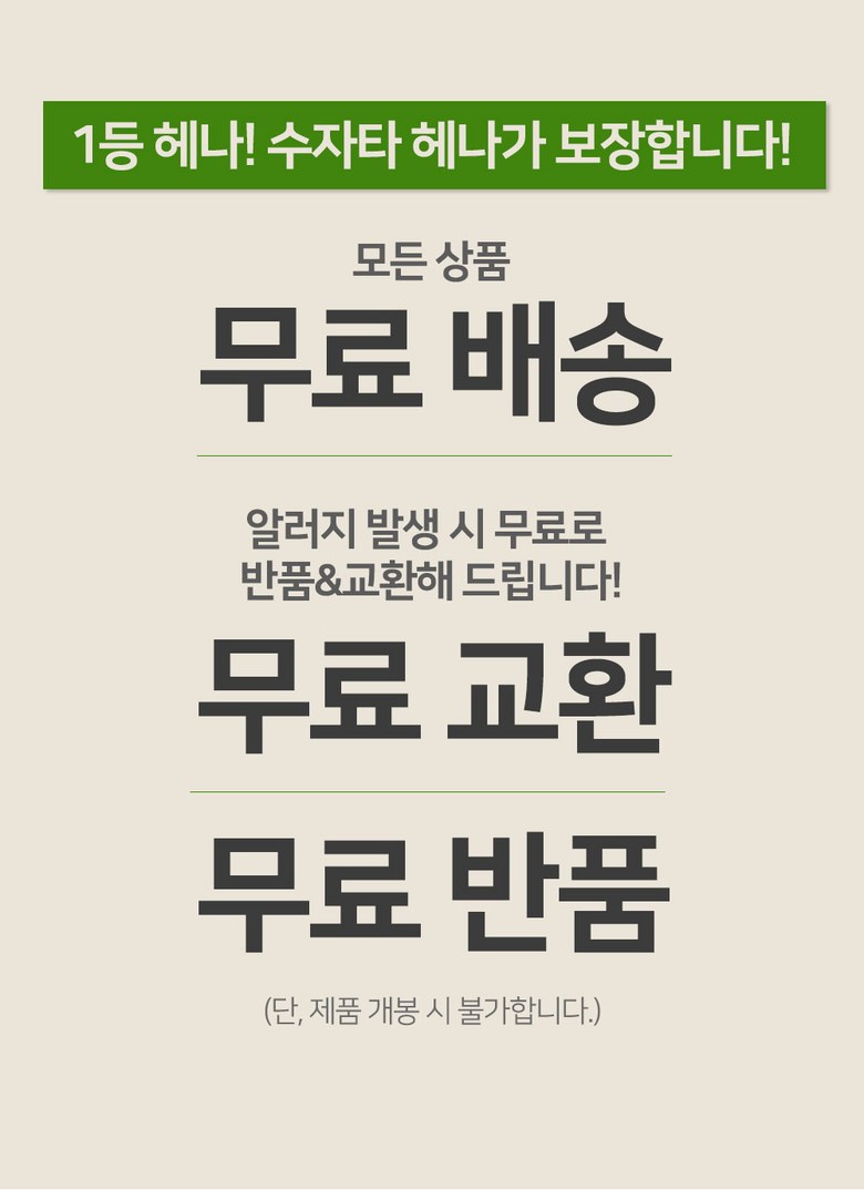 - ㆍ모니터 해상도의 차이로 인해 색상이나 이미지가 실제와 달라, 고객이 단순 변심으로 교환/반품을 무료로 요청하는 경우