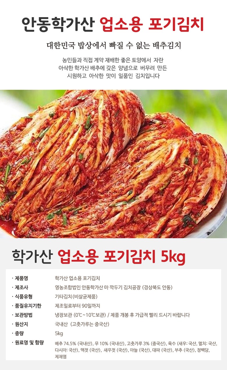 | 제품명 | 상품 상세페이지 참조 | 식품의 유형 | 김치 |