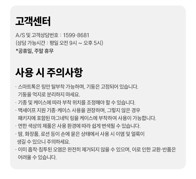 - ㆍ모니터 해상도의 차이로 인해 색상이나 이미지가 실제와 달라, 고객이 단순 변심으로 교환/반품을 무료로 요청하는 경우