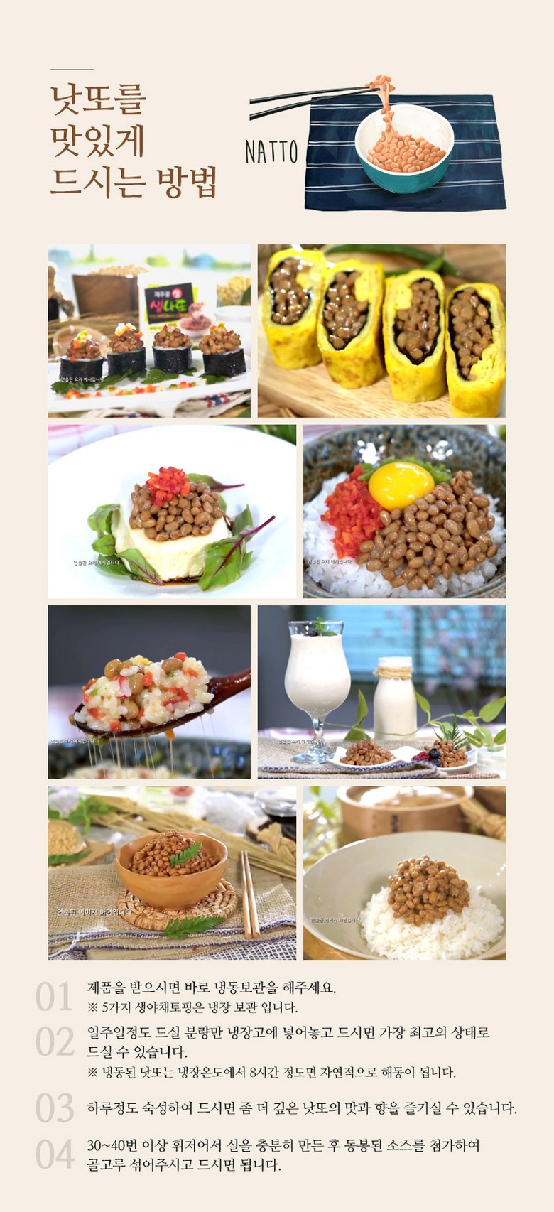 ※ 여름 날씨에는 제품을 받아보실때 낫또가 다소 해동 된 상태가 될 수 있습니다.