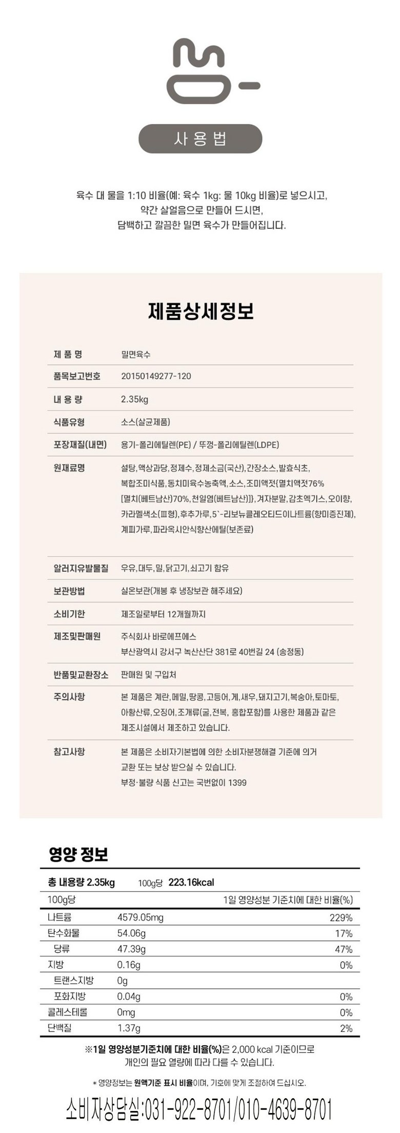 | 제품명 | 밀면육수 | 식품의 유형 | 소스(살균제품) |