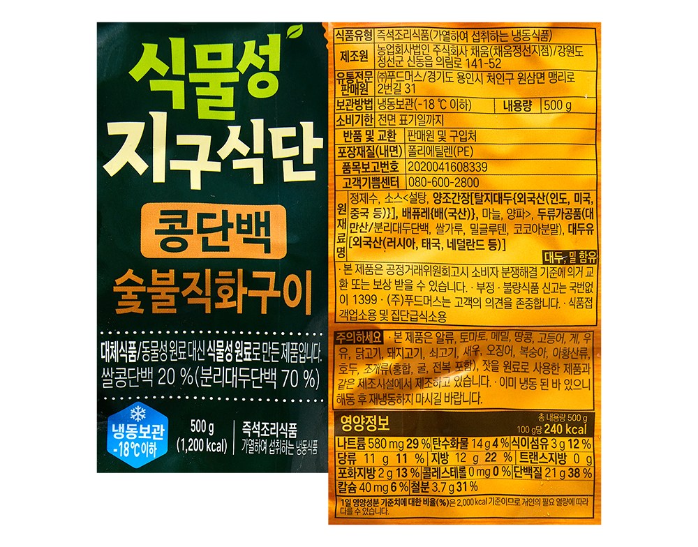 | 제품명 | 콩단백숯불직화구이 | 식품의 유형 | 컨텐츠 참조 |