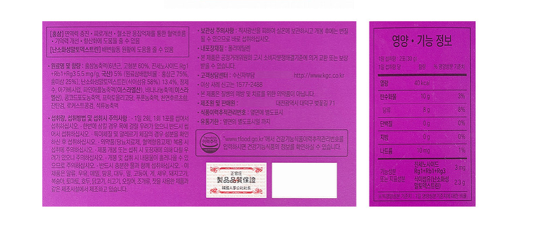 | 원료명 및 함량 | 상품 상세페이지 참조 | 영양정보 | 상품 상세페이지 참조 |